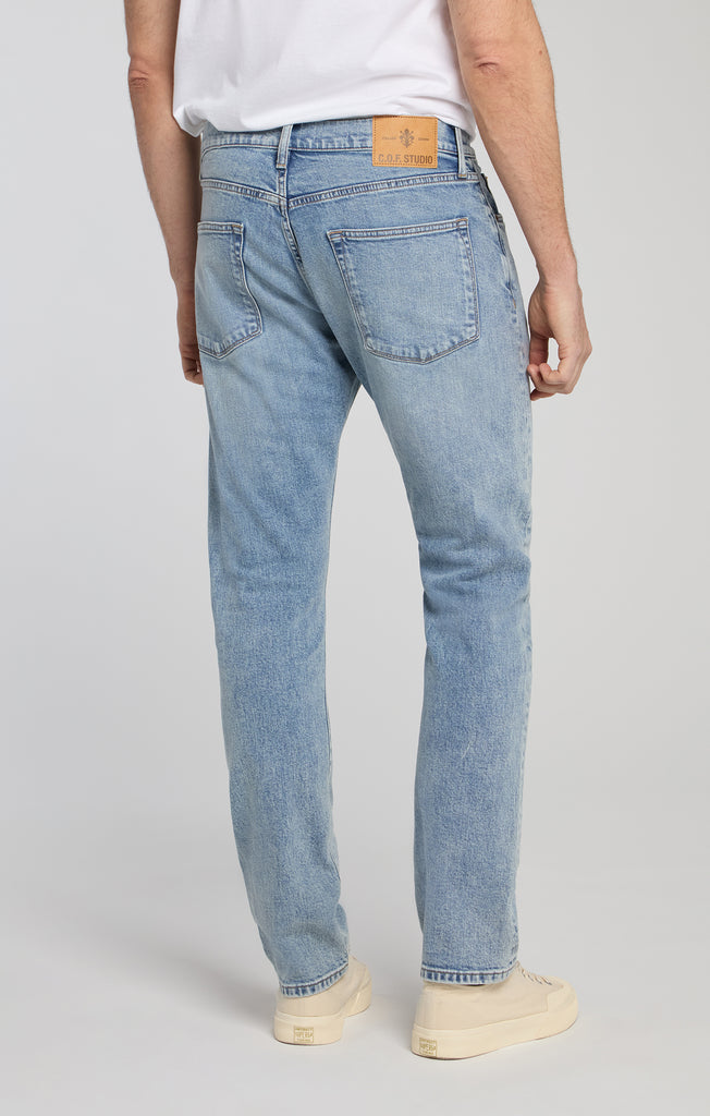 Why We Love It: A new and popular fit from C.O.F. Studio in a classic Light blue, comfort organic stretch denim.