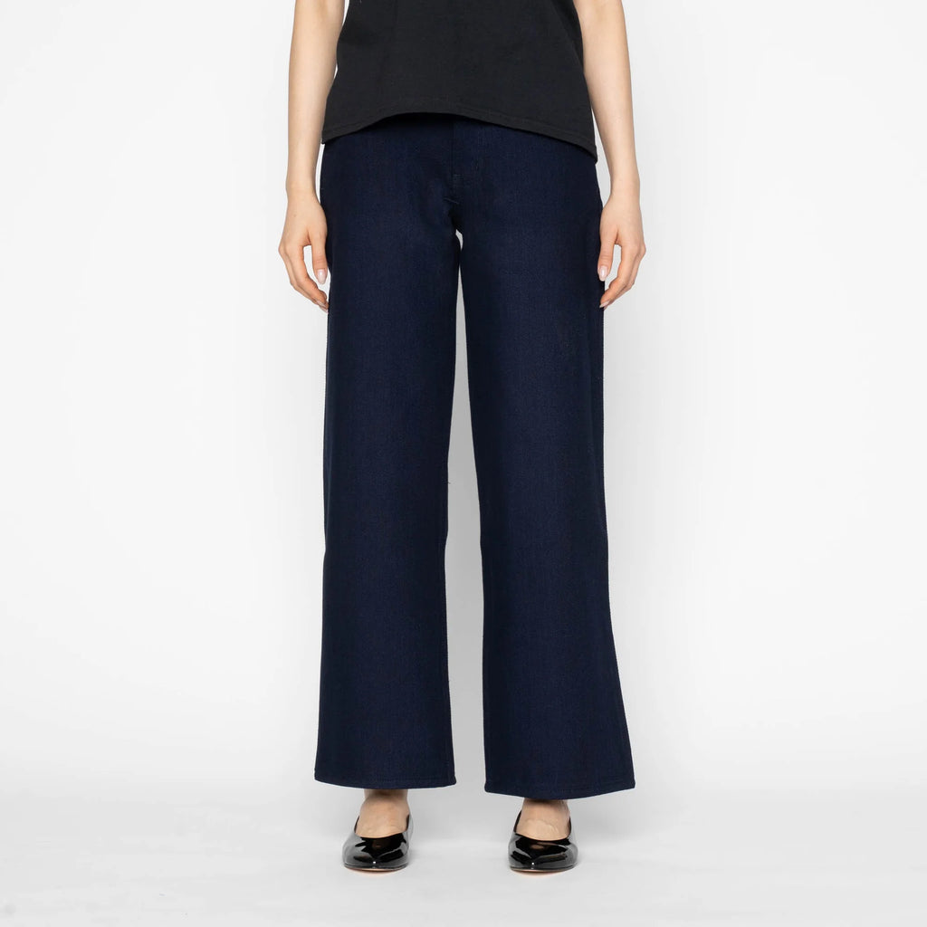 This modern interpretation maintains that dense structure while being fabric-rinsed to enhance softness and comfort from first wear. The rinse treatment also highlights the fabric’s layered indigo tones, allowing subtle gradients to emerge over time.