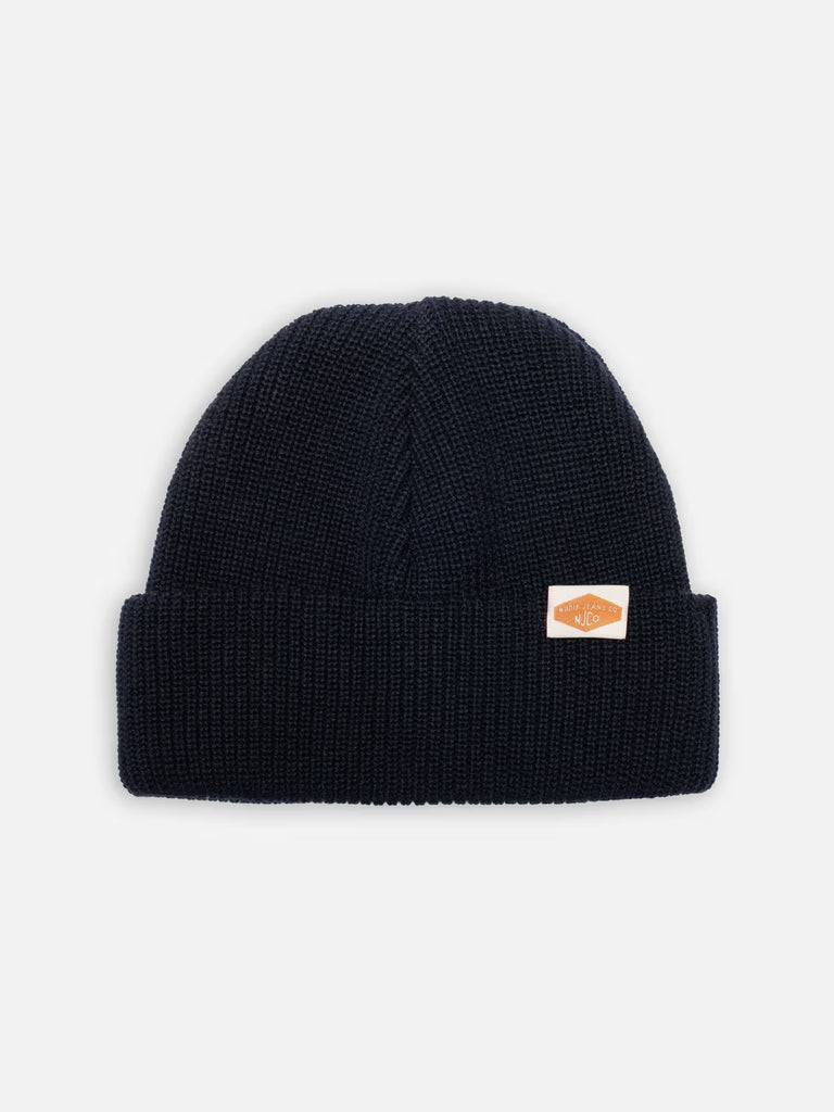 The cotton ribbed beanie is a double, fold-up beanie made in organic cotton rib-knit with dry hand feel. An offwhite logo label is wrapped around the edge