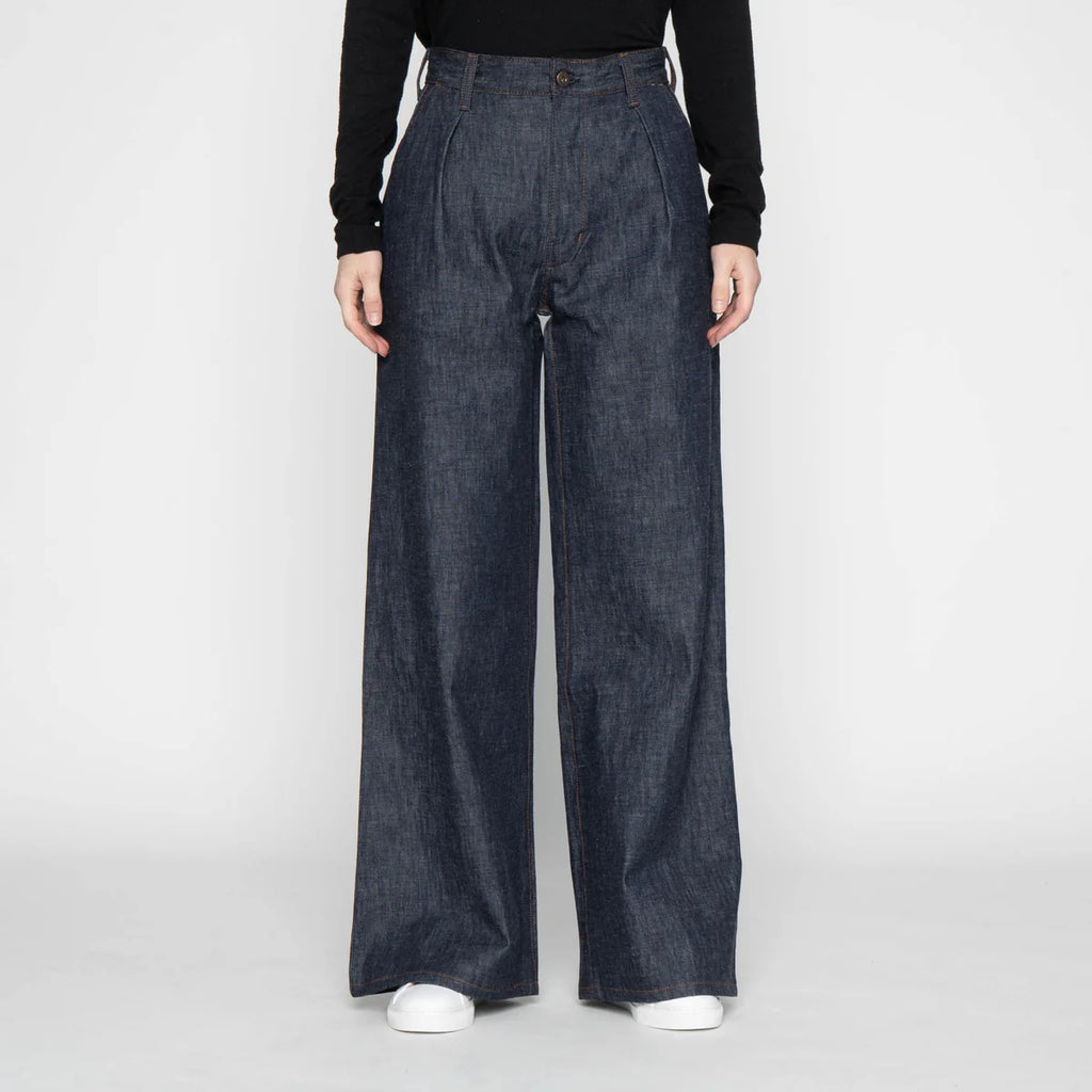 Fit: The Wide Leg Trouser is a wide-leg mid-rise trouser with four-pocket styling, zip fly, and twin pleats.