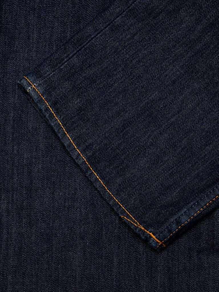 Why We Love It: Wide-legged, loose-fit jeans, crafted from regenerative organic cotton in a beautifully simple deep blue wash. The inspiration behind this wash is refreshingly straightforward: a single home wash of dry denim. Crafted from vintage-style deep indigo denim with a medium slub character, the treatment shifts the hue from a dark blue to a rich, redcast blue, while transforming the denim's texture from flat to beautifully irregular and textured.