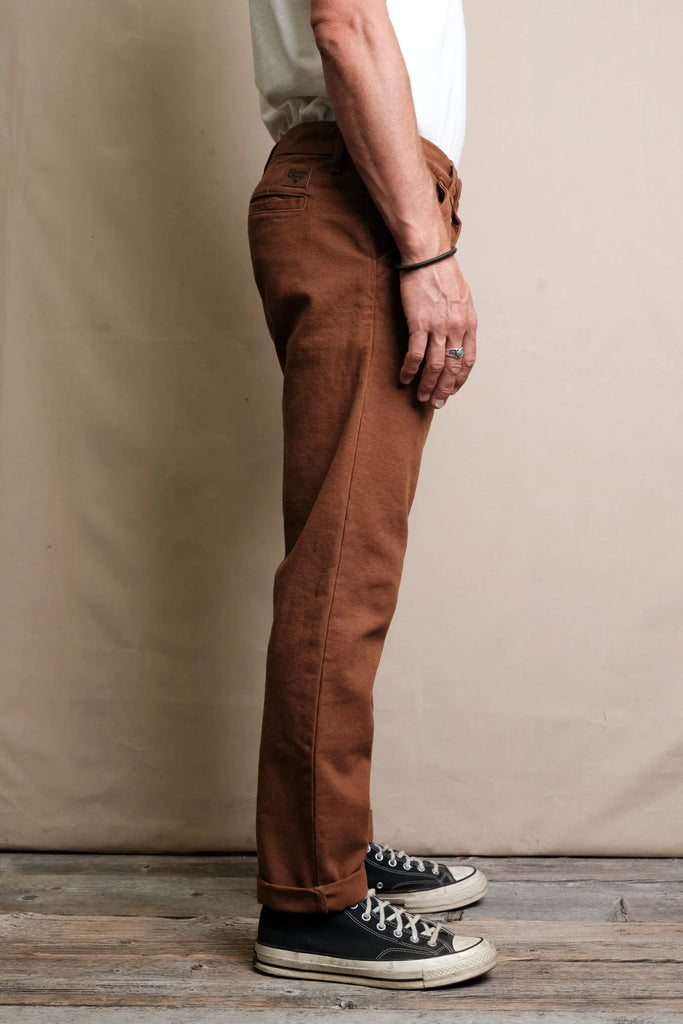 Why We Love It: The Worker Chino has been in Freenote's collection since day one. They started with a 1920's hunting pant and reconstructed it to a slim straight cut. This offers the perfect balance of a tailored fit and utility. The interior of the pant has a clean finish with cotton herringbone binding and extra durable pocket bags from Japan.