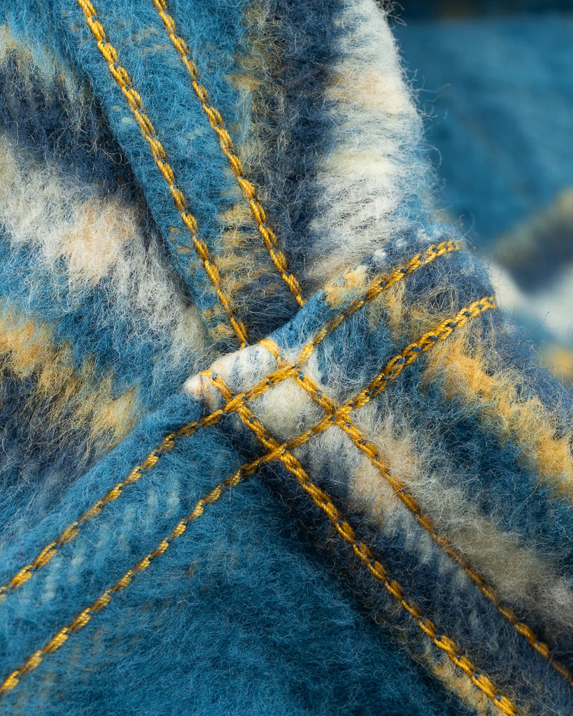 Because Iron Heart now uses a reactive dyeing process for their UHF fabrics—as opposed to the direct dye technique used on older variations—this plaid features a subtler colour palette compared to the vibrant checks from previous seasons. Whereas those older direct-dyed fabrics would mellow in appearance after a few washes, this new dyeing method is far more colourfast. To counter this, we’ve muted the colours slightly to offer a more worn-in appearance from the get-go.