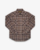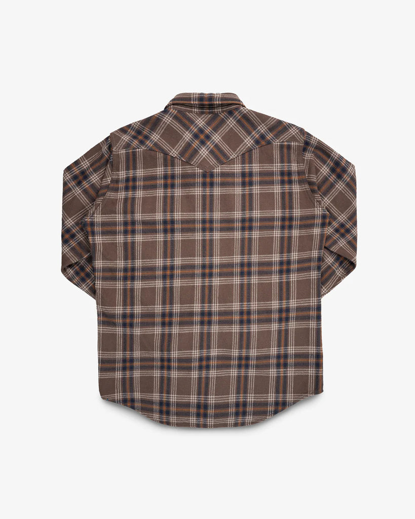 Why We Love It: Substantial, warm and windproof— Iron Heart's 12oz slubby heavy flannel (SHF) shirts share all the same characteristics that Iron Heart's signature ultra heavy flannels are renowned for. However, as the fabric is woven using slub yarn cotton, this pronounces the texture and creates a much more uneven hand when compared to our traditional flannels. While the face of the fabric is packed full of character and rugged charm, IH still double brush the reverse to ensure a very soft, cosy flannel shirt. Seen here in IH's western cut with a classic brown check.