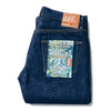 The huge warriors on the patch show the heft of the 21oz denim while the swords denote the “zero” state of absolute readiness and concentration. Other details include an exclusive flasher, the iron pine tree buttons, copper coin-shaped rivets and our ‘Impermanence’ jaquard slake.