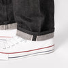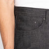 Why We Love It: The Yatagarasu Selvedge is a 15oz Japanese selvedge denim inspired by Yatagarasu, the mythical three-legged crow and revered Shinto God of guidance. This denim features a sulfur-dyed black warp that delivers a deep, rich tone from the outset. As the denim wears in, the contrasting white weft begins to emerge, creating dynamic, high-contrast fades unique to each wearer. Key details include tonal stitching, black pocket bags, pink selvedge ID, and black military spec copper buttons and rivets. The standout natural vegetable-tanned leather patch featuring metallic black foil artwork by renowned Canadian artist Jacqui Oakley, adds a powerful visual element to this mythologically-inspired piece.