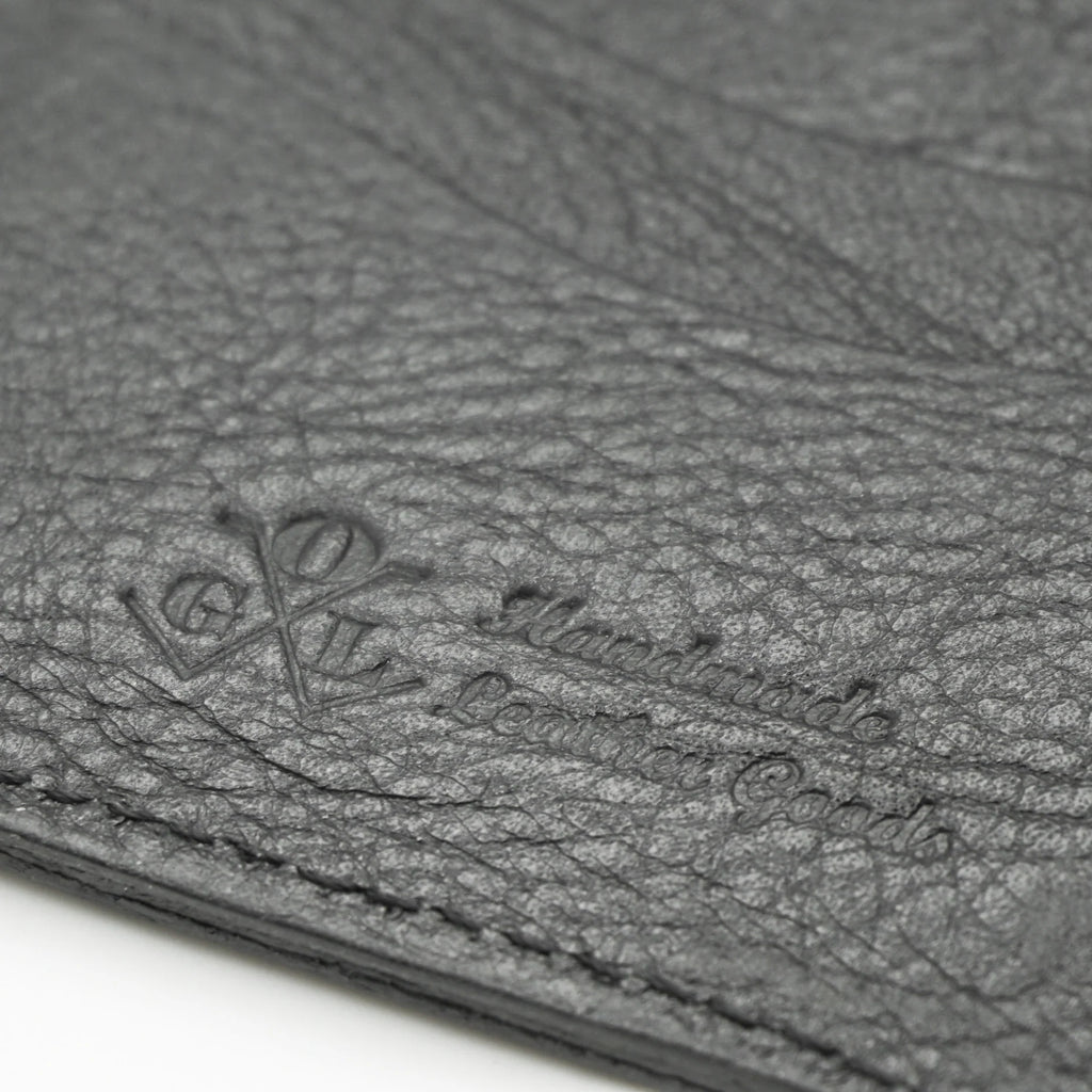 This wallet is crafted from full-grain vegetable-tanned cowhide leather that has been drum-tumbled to build enhanced texture and natural grain depth. Drum tumbling rotates the leather through large drums, mingling and accentuating surface grains into an organic, irregular pattern that delivers vintage character and visual richness. Vegetable tanning uses natural plant-based tannins that allow the leather to age beautifully, gaining a rich patina over time.