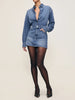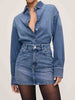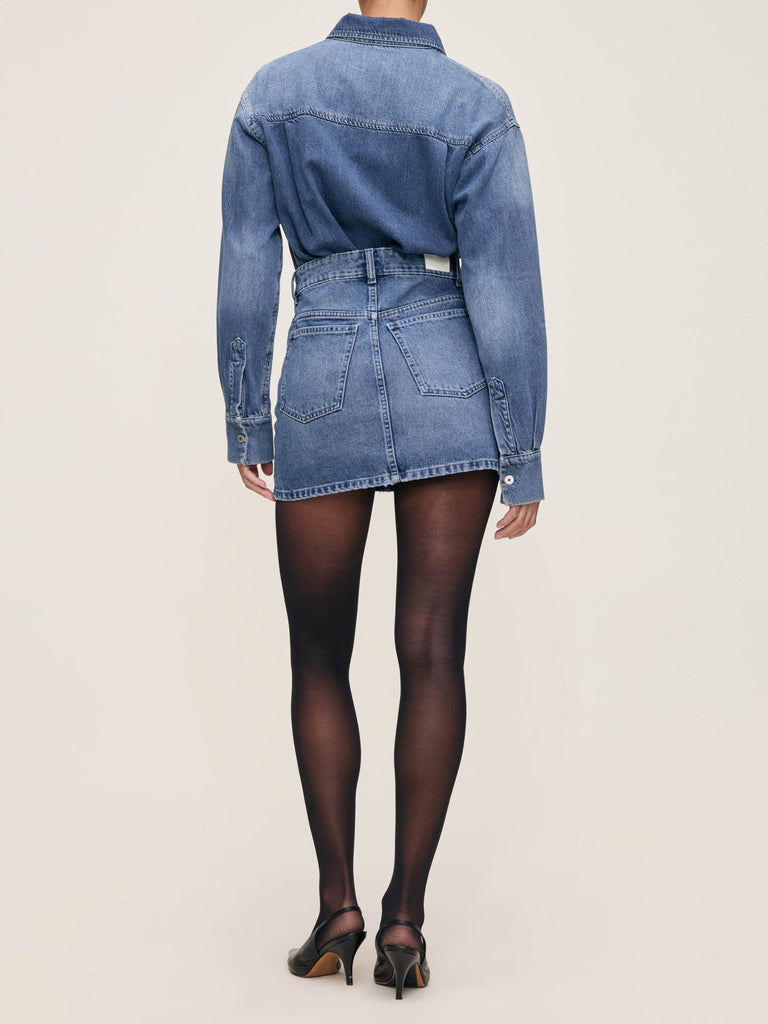 Delray is bright indigo wash with authentic character. It features silver button, copper rivets, khaki stitching, a clean hem and a small ecru back patch.
