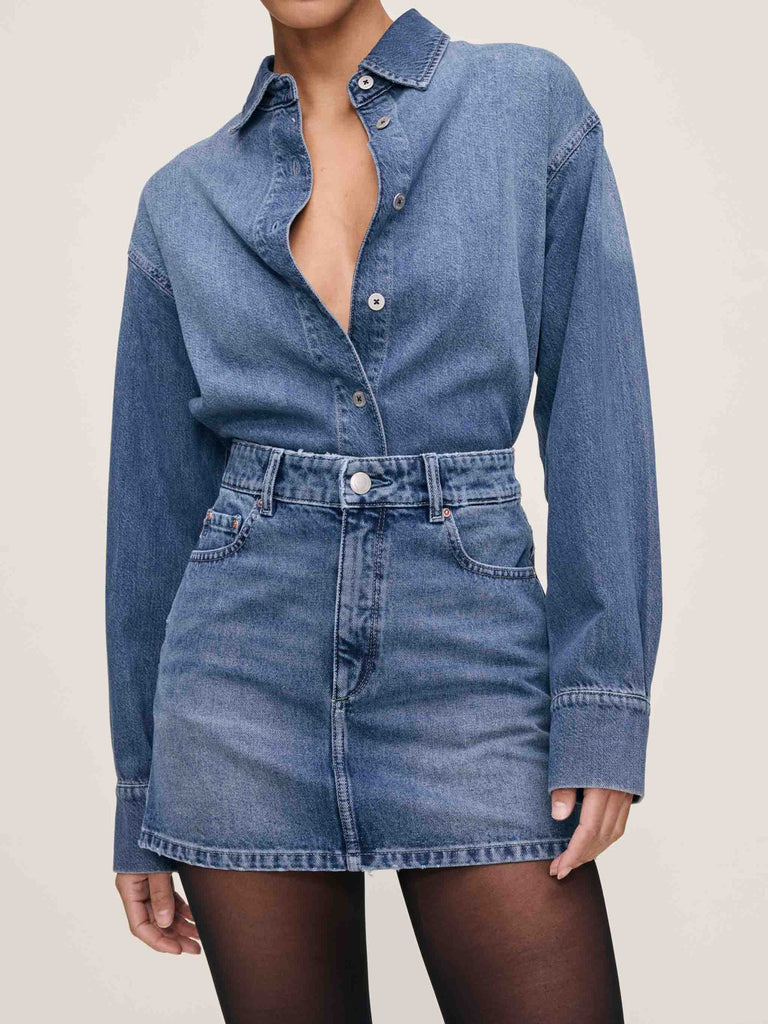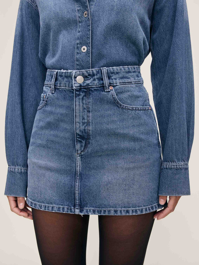 Alma is an A-line skirt designed to sit low on the hips and graze the thigh
