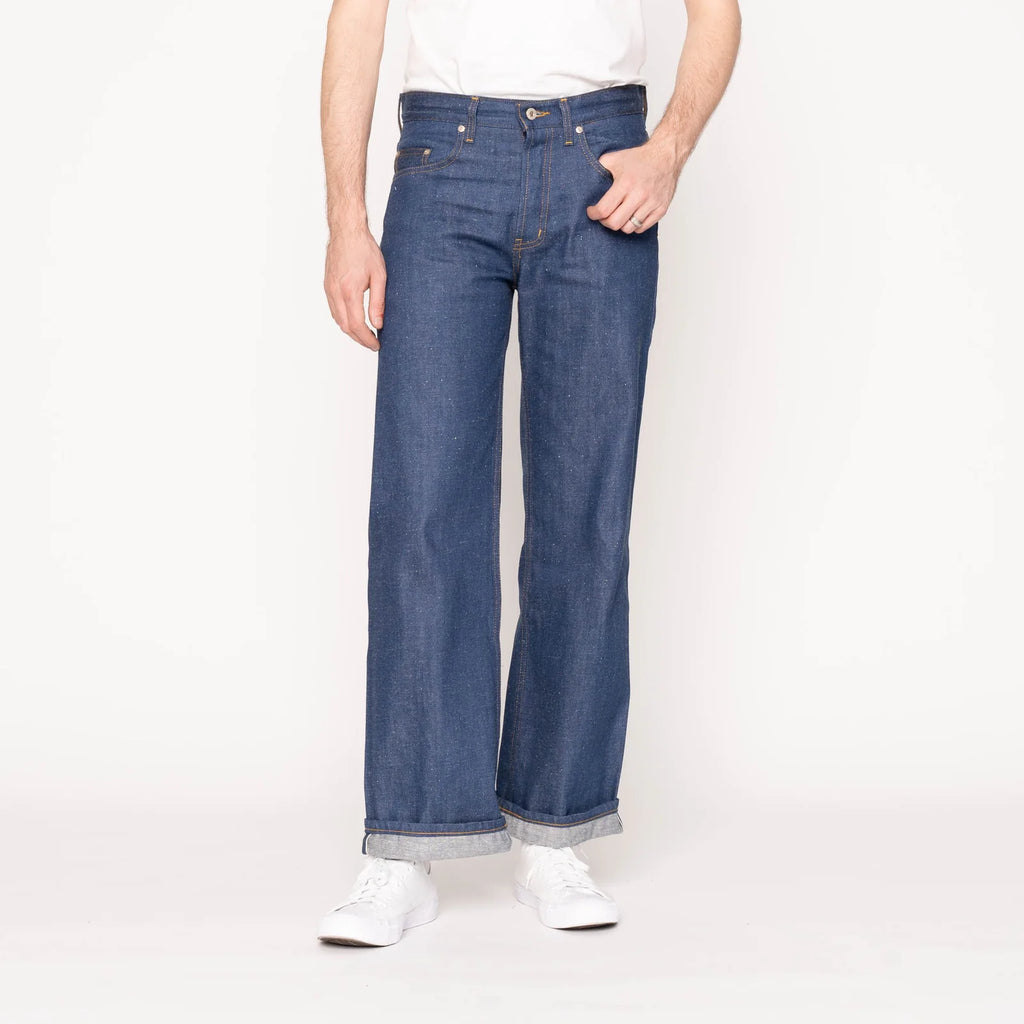Why We Love It: Introducing the Workforce Selvedge, a 10.9oz lightweight Japanese selvedge denim that perfectly captures the essence of traditional workwear with its classic workwear blue tone. This denim is distinctively constructed with a slubby and neppy white weft yarn, which scatters cotton specks across both the front and back of the fabric, infusing it with authentic old-school flair. Further adding its vintage appeal is the classic blue line selvedge ID.